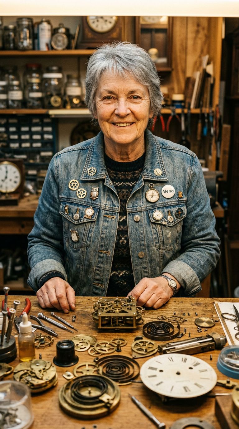 half-finished clockwork mechanisms. Warm tungsten overhead light